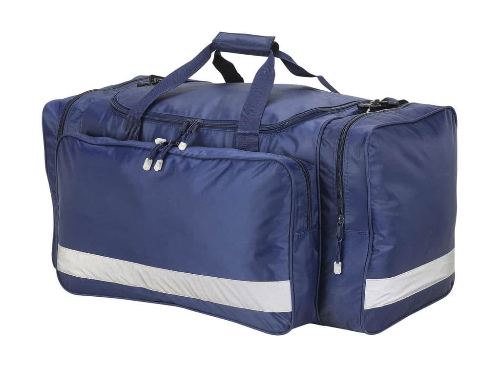 100% Polyester (420D) with waterproof PVC lining Large main compartment Holdall with two end pockets Large front pocket Reflective strips on three sides Reinforced carrying handles with wrap Adjustable shoulder strap Capacity: 75 Litres Dimensio