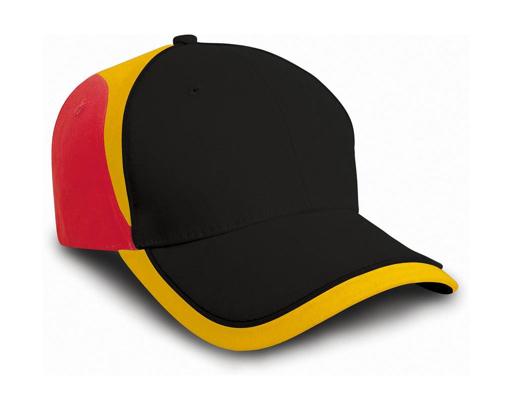 260 g/m² 100% Cotton, heavy brushed (Drill) 6-panel cap in national colours High crown Pre-bent peak Contrast colour piping Tear release fastening.