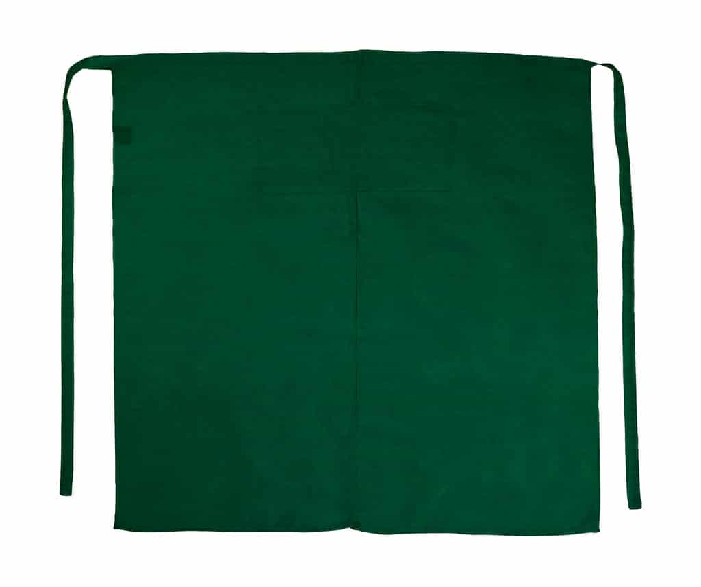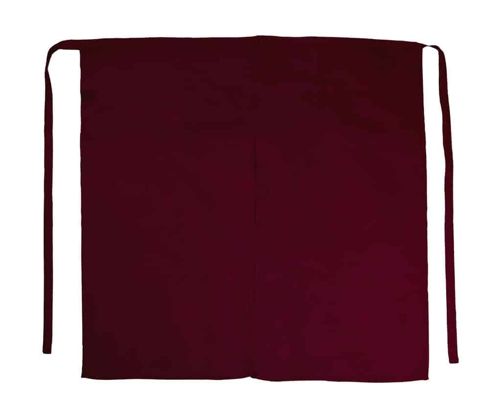 205 g/m² 65% Polyester, 35% Cotton Easy care Reactive dyed Colourfast Two patch pockets Long front split for ample legroom Sturdy end-to-end apron ties Dimensions: 100 x 100 cm Washable up to 60°C.