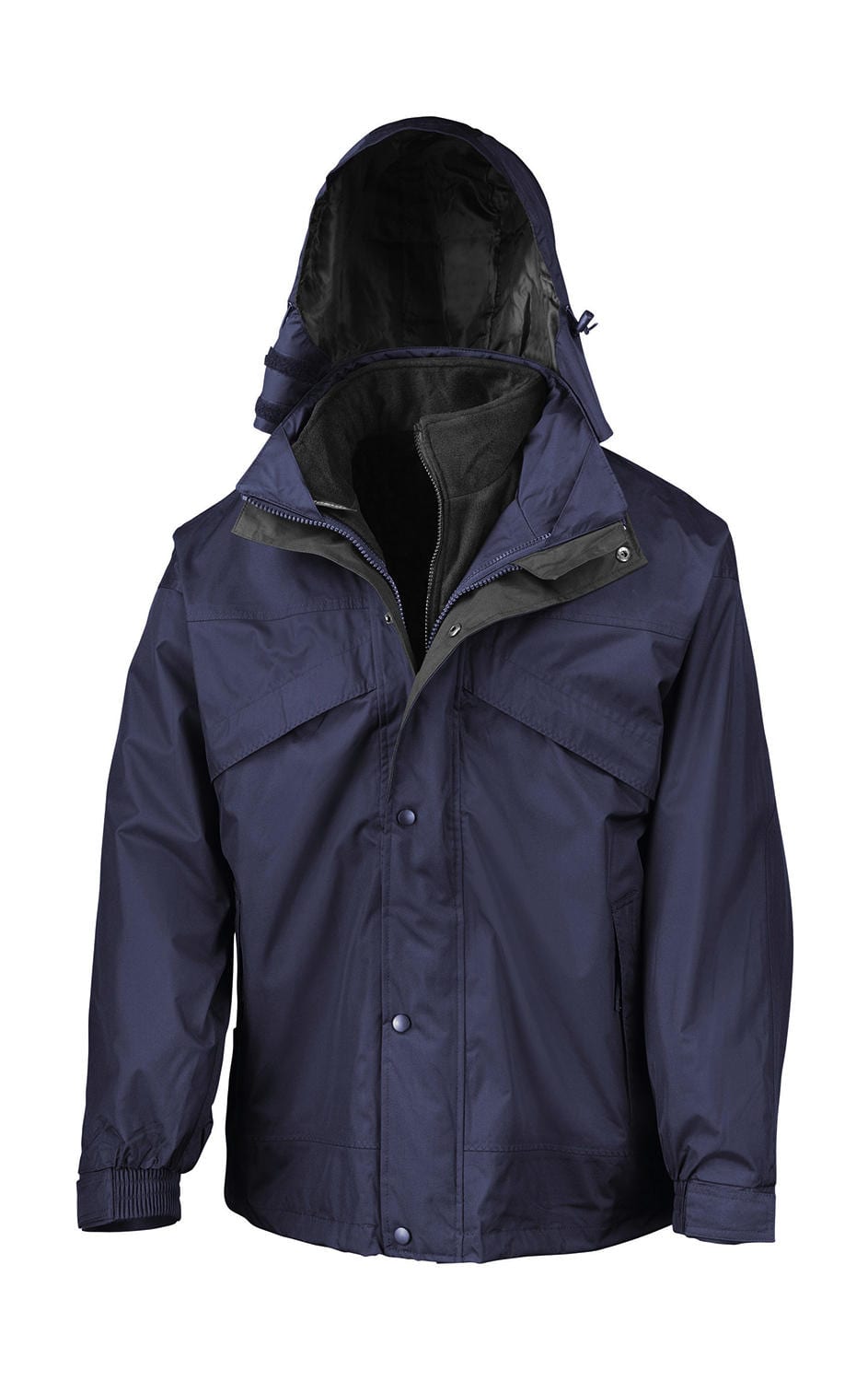 Outer: 230 g/m², 100% Polyester Lining: 100% Polyester Removable inner jacket: 280 g/m², 100% Polyester (Fleece in Black) Outside jacket with double stitched taped seams Wind and waterproof (4,000 mm) Hood in collar with drawcord adjuster 2-way fu