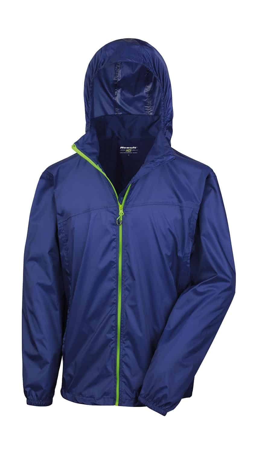100% Nylon Wind and waterproof (3000 mm) Breathable (1000 g/m² in 24h) Integral elasticised hood Printed neck label Full zip in contrast color Taped seams Side pockets (one with zip) Elasticised cuff Adjustable hem cord Matching stow bag Suit