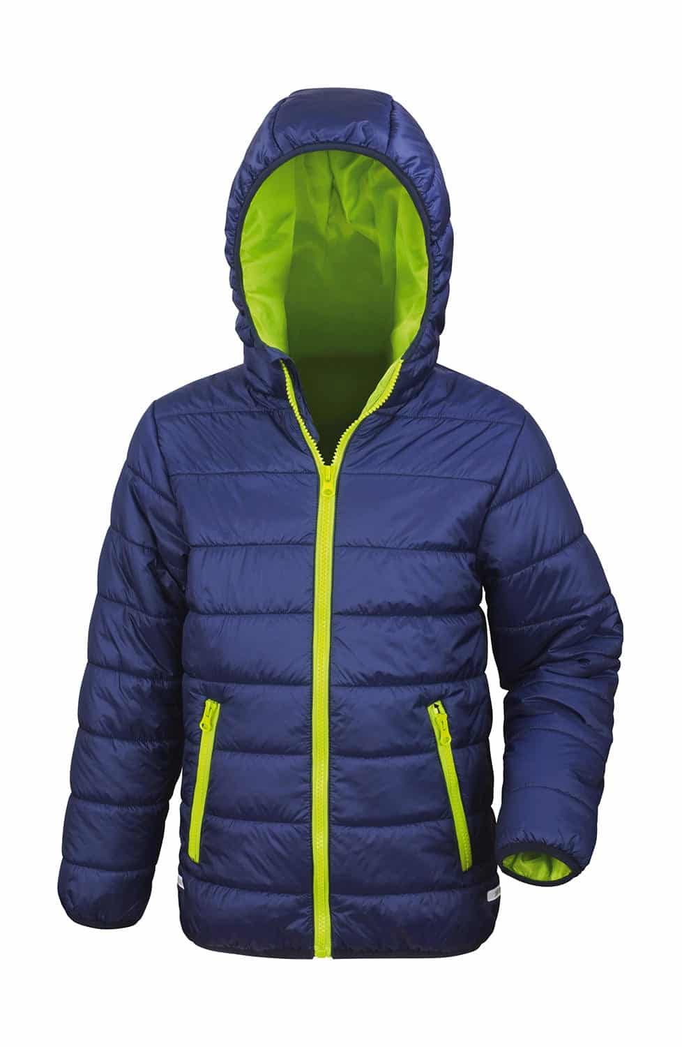 Outer and Lining: 100% Polyest Filling: 160 g/m², 100% Polyester Super soft, lightweight and warm Intregral hood Contrast lining and trim Hinged inner neck panel for self-branding Full front zip Soft bound cuffs and hem Reflective hip details Z