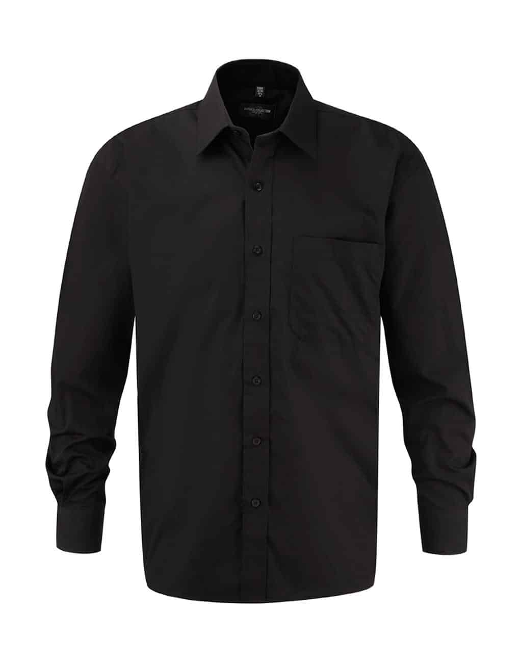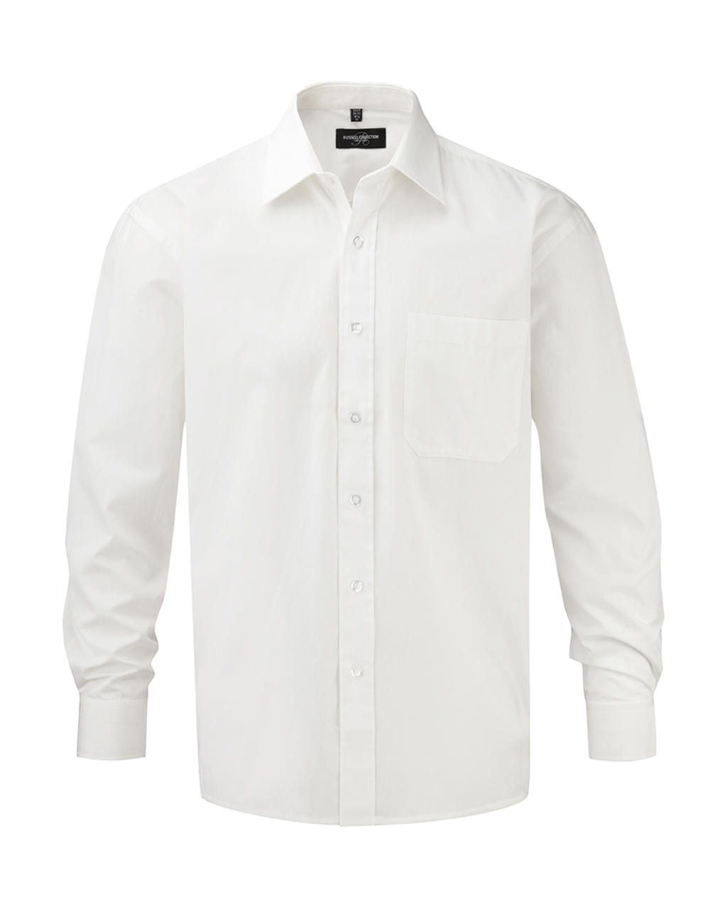 125 g/m² (White: 120 g/m²) 100% Cotton (poplin) Long sleeves Classic style boned collar Tonal buttons Back yoke with 2 side pleats Pocket over left chest mitred edge pocket Rounded 2 button adjustable cuff plus single button on cuff gauntlet Cl