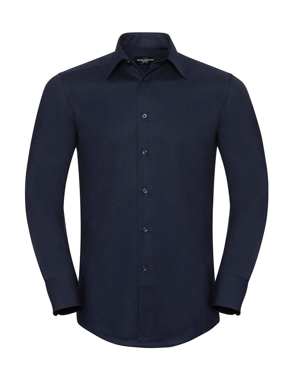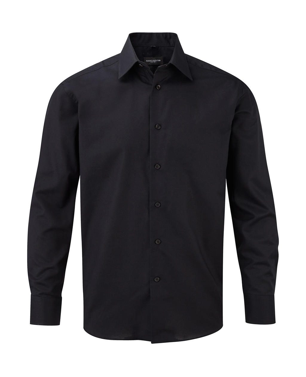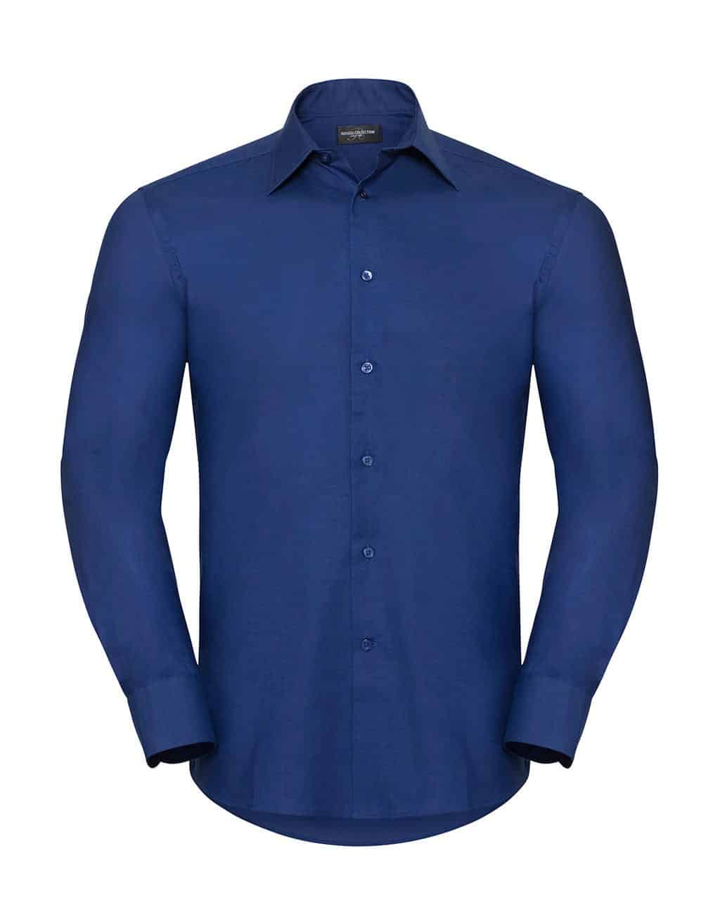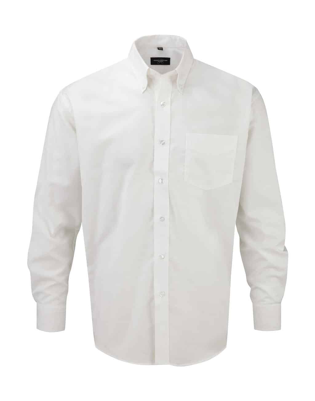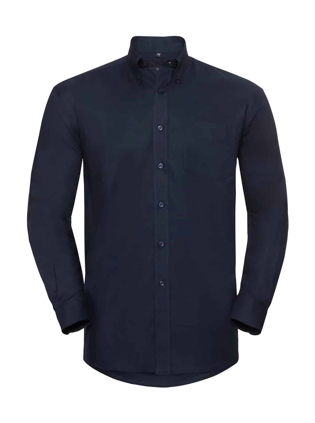 135 g/m² (White: 130 g/m²) 70% Cotton, 30% Polyester (Oxford) Long sleeve Stiffened semi-cutaway boned collar Back yoke Tonal buttons Double turnback hem on sleeves Stylish, rounded edge 2 button adjustable cuff (with option for cuff links) Tail
