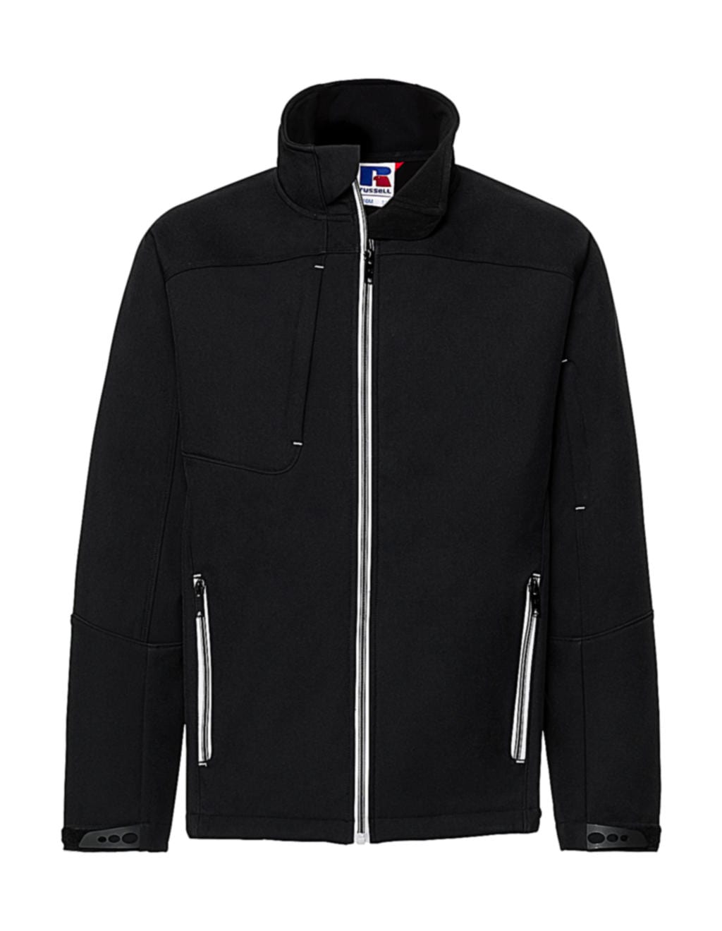 320 g/m² 94% polyester, 6% Elastane Bionic-Finish® Eco (3 layer softshell with hydrophobic membrane) Fluorine and PFC free Wind and waterproof (5000 mm) Breathable (5000 g/m² in 24h) Stand up collar Hydroshell air panels at armpits Zipped chest,