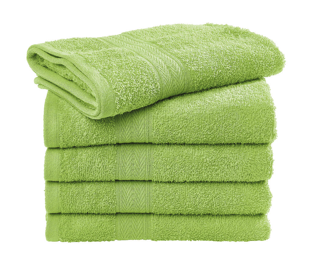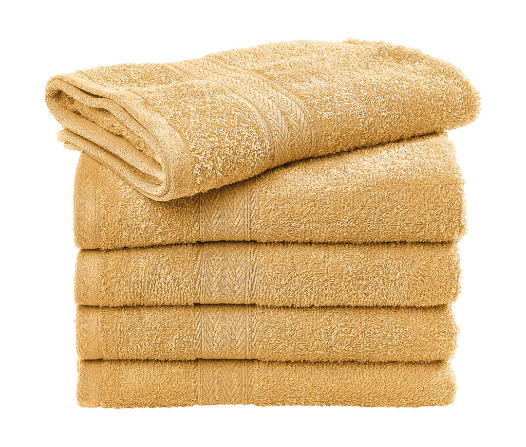 420 g/m² 100% Cotton Bath towel with 2 hanging loops Dimension: 70 x 140 cm With decorative trim (4,5 cm) Washable up to 60°C.